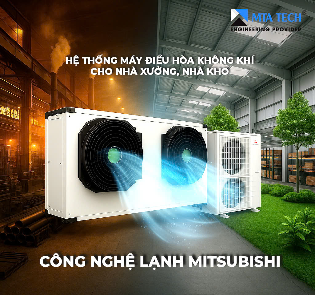 Hệ thống máy điều hòa không khí sử dụng công nghệ lạnh Mitsubishi là dòng máy lạnh công nghiệp công suất lớn, được phát triển cho môi trường sản xuất và kho vận tại khu vực châu Á. Với thiết kế tập trung vào hiệu suất làm mát sâu, phân phối khí đồng đều, tiết kiệm điện và độ bền cao, đây là giải pháp tối ưu cho các nhà xưởng quy mô trung bình đến lớn có yêu cầu cao về kiểm soát vi khí hậu.