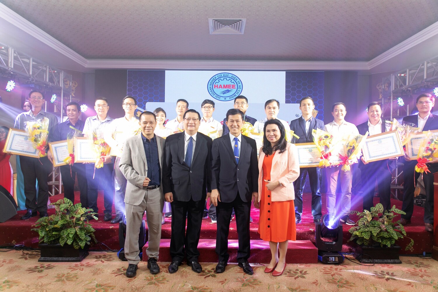 Ông Lê Hoài Quốc Chủ tịch HAuA và Ông Đỗ Phước Tống Chủ tịch HAMEE chụp hình cùng đại diện các đơn vị