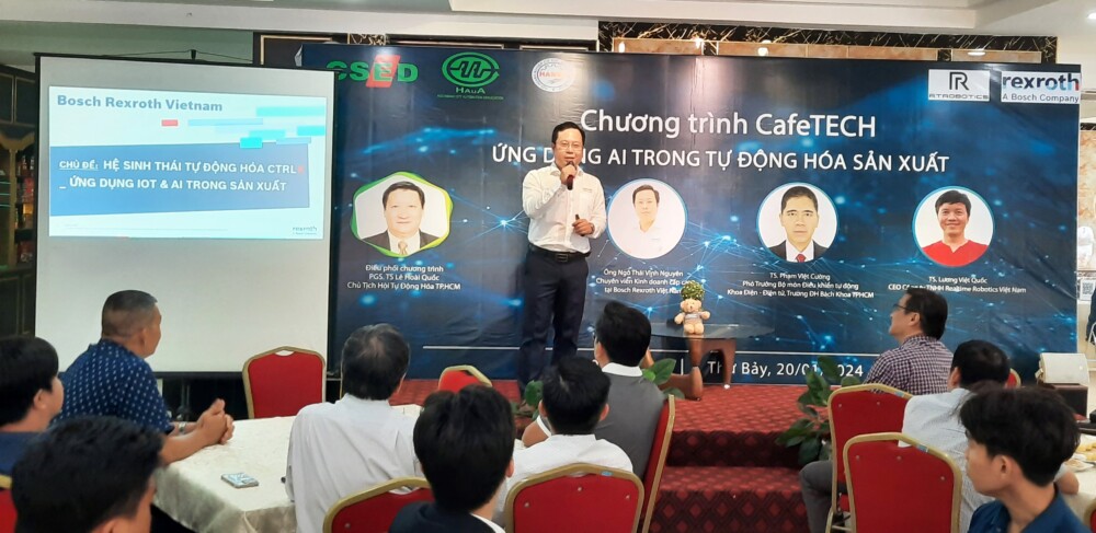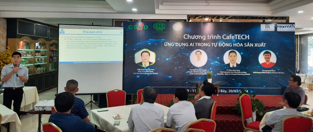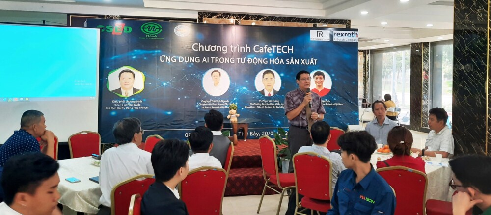 TP. Hồ Chí Minh, ngày 20/1/2024 – Sự kiện CafeTech đầu năm 2024 do Hội Tự động hóa TP.HCM (HAuA) phối hợp cùng Hội Doanh nghiệp Cơ khí – Điện TP.HCM (HAMEE) và Trung tâm Hỗ trợ và Phát triển Doanh nghiệp TP.HCM (CSED) tổ chức đã diễn ra thành công với chủ đề nổi bật: “Ứng dụng AI trong tự động hoá sản xuất”.