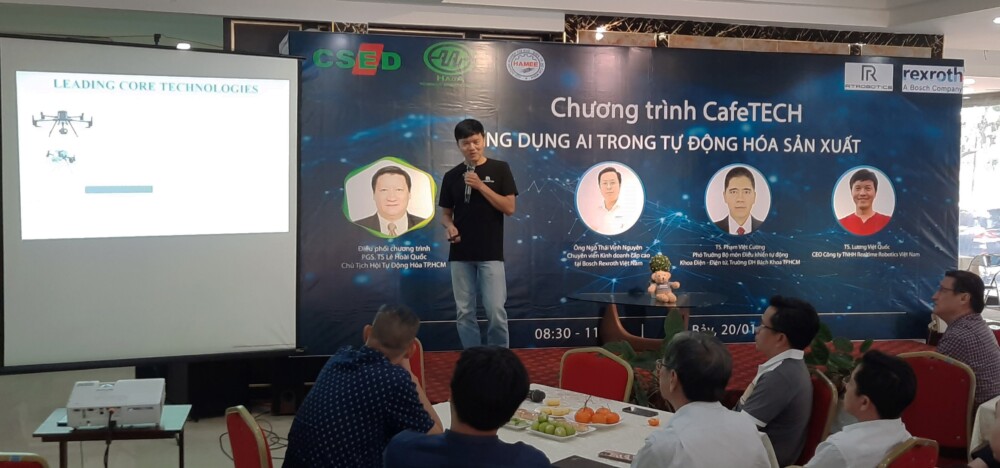 TS Lương Việt Quốc – CEO Công ty TNHH Realtime Robotics Việt Nam chia sẻ thông tin tại chương trình CafeTech với chủ đề: “Ứng dụng AI trong tự động hoá sản xuất”.